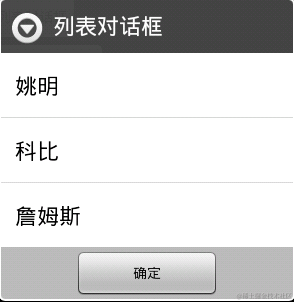 1 final String[] names = {"姚明","科比","詹姆斯"};//列表中显示的内容组成的数组