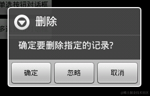 16 .setNeutralButton("忽略",new DialogInterface.OnClickListener() {//中立的,什么也不错