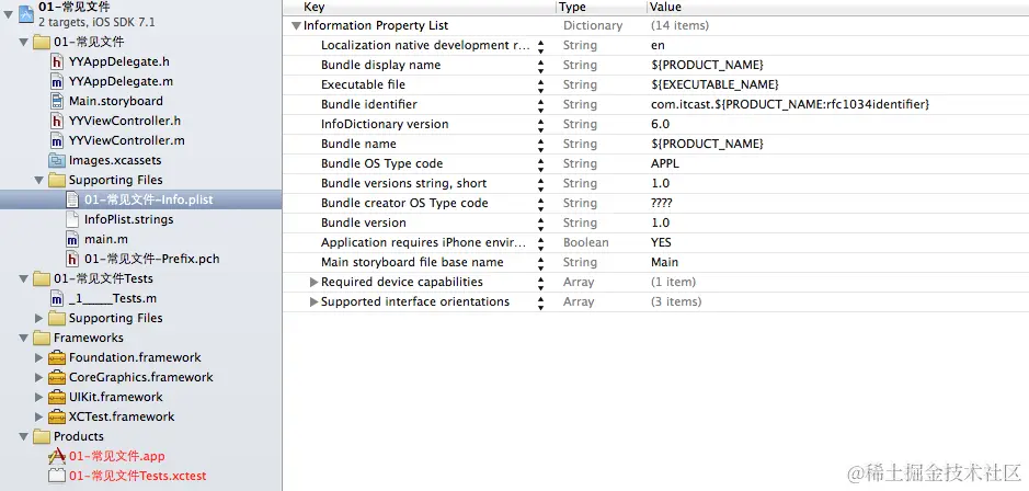 (1)XXXinfo.plist文件(在该项目中为 01-常见文件-Info.plist)