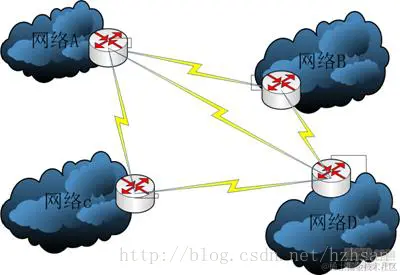 如果网络A中的主机发现数据包的目的主机不在本地网络中,就把数据包转发给它自己的网关,再由网关转发给网络B的网关,网络B的网关再转发给网络B的某个主机。网络B向网络A转发数据包的过程也是如此。