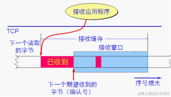 - TCP 标准没有规定对不按序到达的数据应如何处理.通常是先临时存放在接收窗口中,等到字节流中所缺少的字节收到后,再按序交付上层的应用进程
