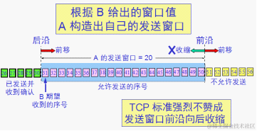 - A 的发送窗口并不总是和 B 的接收窗口一样大(因为有一定的时间滞后)