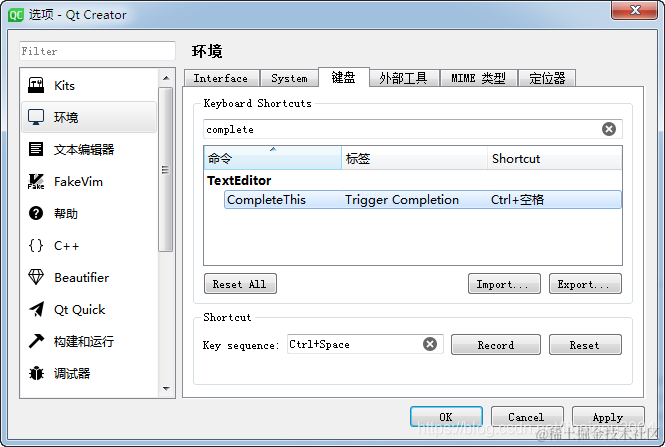 Qt Creator具有自己的代码补全快捷键【Ctrl】+【Space】