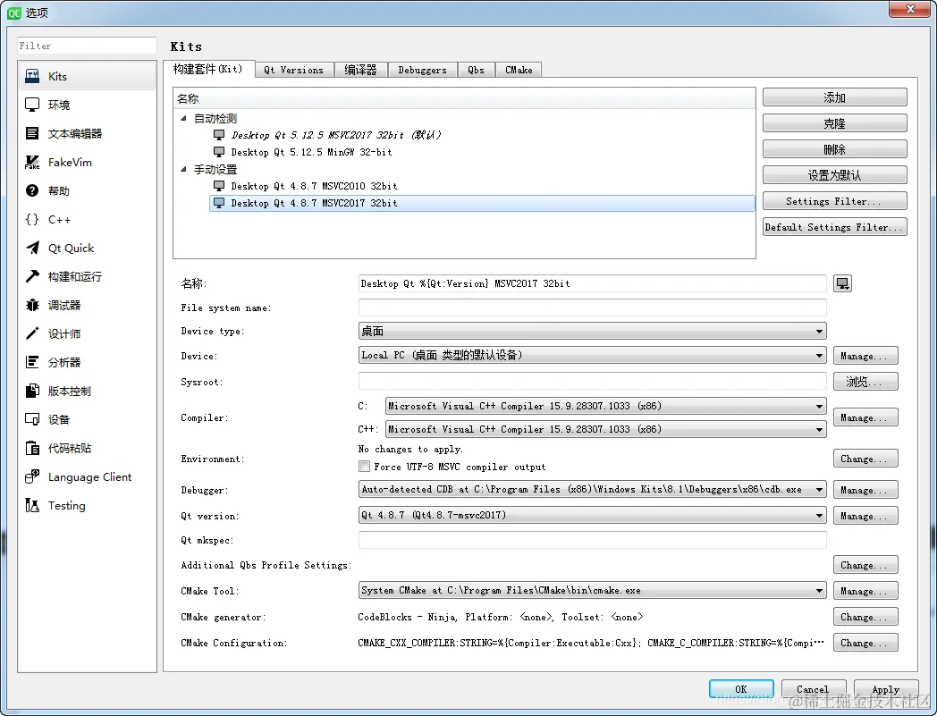 1、Qt 4.8.7+MSVC 2017
