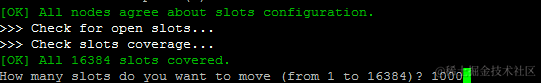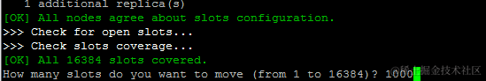 命令执行后,系统会提示我们要移动多少哈希槽,这里移动1000个
