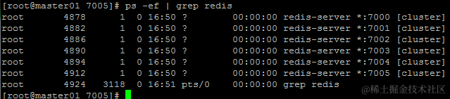 创建7006目录,拷贝7000中的redis.conf到7006中,然后修改端口port为7006,修改好后进入7006目录启动这个节点: