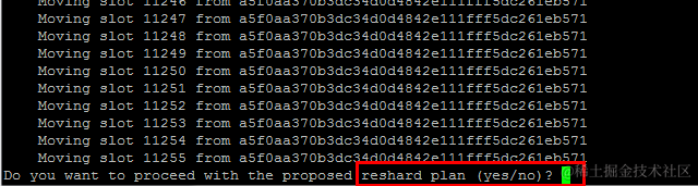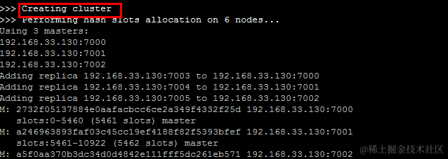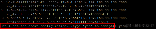 然后再输入yes,redis集群就开始分配哈希槽了。