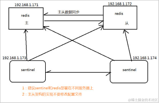redis的sentinel系统用于管理多个redis服务器,该系统主要执行三个任务:监控、提醒、自动故障转移。
