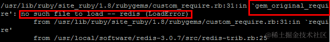 5.3、上面两个步骤后,执行创建集群目录可能还会报错,提示不能加载redis,是因为缺少redis和ruby的接口,使用gem 安装。