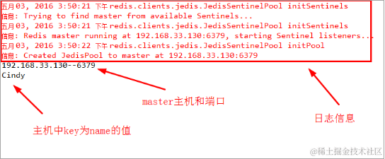 3、自动故障转移(Automatic failover): 当一个主服务器不能正常工作时,Redis Sentinel 可以将一个从服务器升级为主服务器, 并对其他从服务器进行配置,让它们使用新的主服务器。当应用程序连接Redis 服务器时, Redis Sentinel会告之新的主服务器地址和端口。