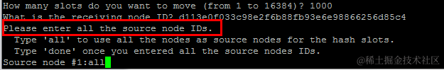 输入all 表示从所有的主节点中随机转移,凑够1000个哈希槽