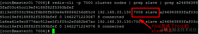 使用下面命令来确认一下192.168.33.130:7006是否已经成为192.168.33.130:7001的从节点。
