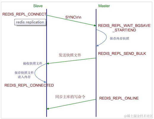 注意:redis2.8之前的版本:当主从数据库同步的时候从数据库因为网络原因断开重连后会重新执行上述操作,不支持断点续传。