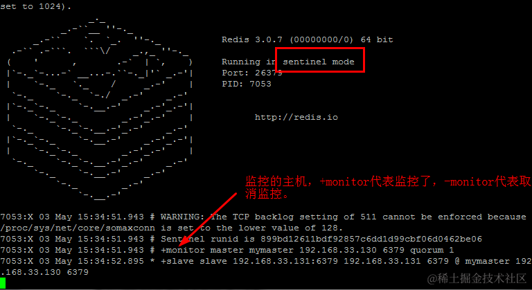 注意:在使用sentinel监控主从节点的时候,从节点需要是使用动态方式配置的,如果直接修改配置文件,后期sentinel实现故障转移的时候会出问题。