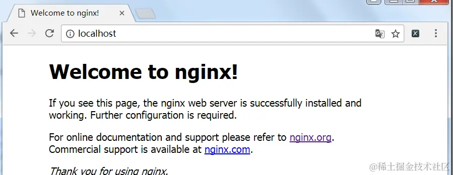 打开浏览器,输入地址:http://localhost,访问页面,出现如下页面表示访问成功