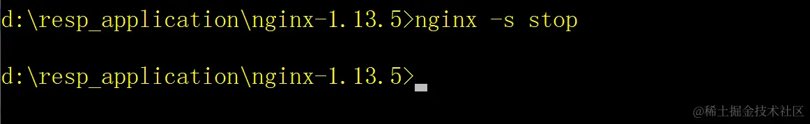 D:/resp_application/nginx-1.13.5> nginx -s stop