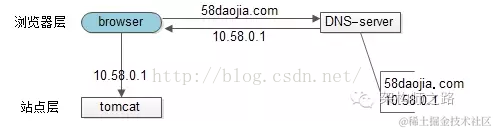 1)浏览器通过DNS-server,域名解析到ip