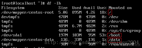 df -lh #可以查看分区情况,磁盘的使用情况以及文件系统被挂载的位置\