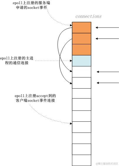 //如果使用epoll模块,则在epoll上注册读事件,操作类型是EPOLL_CTL_ADD,也就是关注服务端申请的socket fd是否有新连接申请