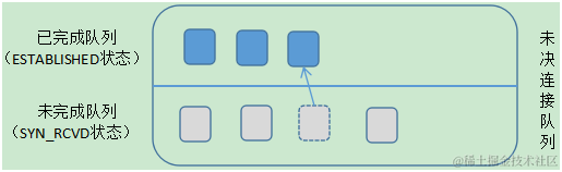 2. 一旦该连接的tcp三次握手完成,就会从未完成队列加入到已完成队列中\