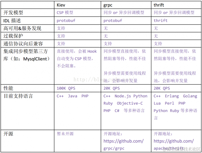 由于微服务架构经常需要部分发布,所以选择一个支持向后兼容的通信协议是很必要的一个特性。 Kiev选取protobuf作为通信协议。