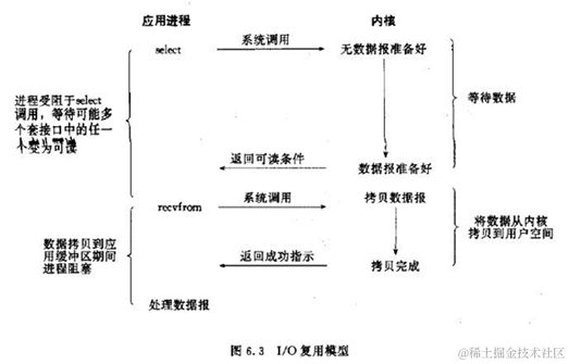 而后select调用进程可以自己或通知另外的进程(注册进程)来再次发起读取IO,读取内核中准备好的数据。