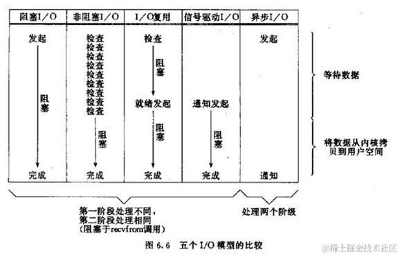 《UNIX网络编程》说得很清楚,5种IO模型分别是阻塞IO模型、非阻塞IO模型、IO复用模型、信号驱动的IO模型、异步IO模型;前4种为同步IO操作,只有异步IO模型是异步IO操作。下面这样些图,是它里面给出的例子:接收网络UDP数据的流程在IO模型下的分析,在它的基础上再加以简单描述,以区分这些IO模型。
