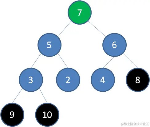 删除节点8,节点7成为新堆顶:
