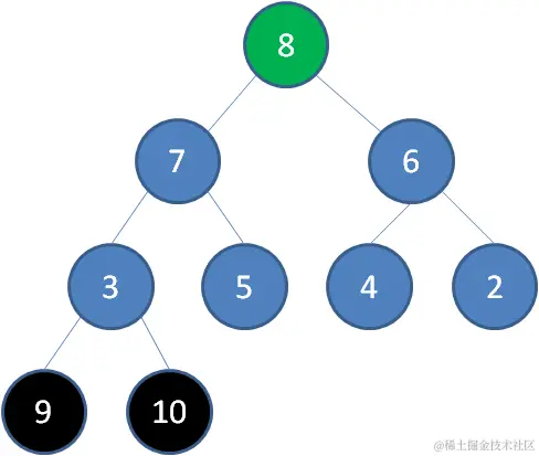 删除节点9,节点8成为新堆顶: