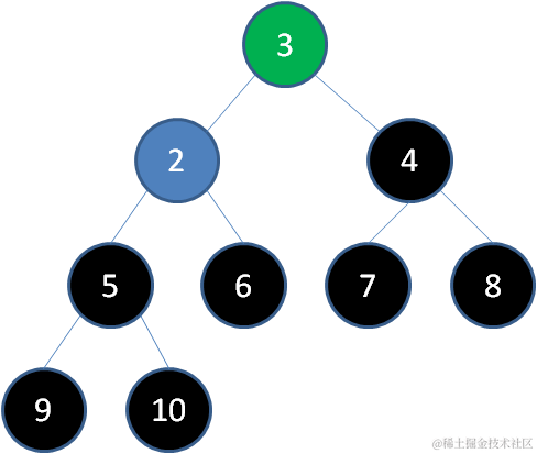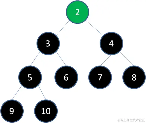删除节点3,节点2成为新堆顶: