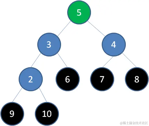 删除节点6,节点5成为新堆顶: