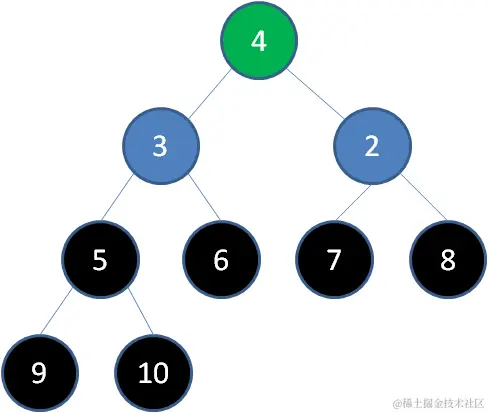 删除节点4,节点3成为新堆顶: