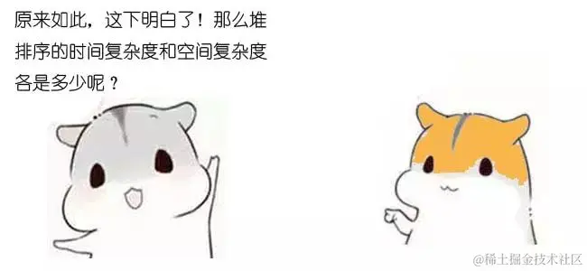 第二步,需要进行n-1次循环。每次循环调用一次 downAdjust 方法,所以第二步的计算规模是 (n-1) * logn ,时间复杂度 O(nlogn) 。