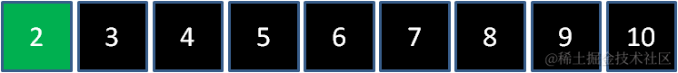 到此为止,我们原本的最大堆已经变成了一个从小到大的有序集合。之前说过二叉堆实际存储在数组当中,数组中的元素排列如下: