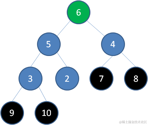 删除节点7,节点6成为新堆顶:
