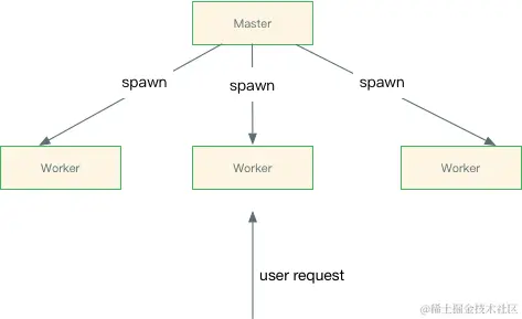 master 的功能就是管理 worker 进程,不接收和处理用户请求。如果 worker 进程异常退出,那么 master 则会自动拉起新的进程来替代挂掉的老进程。除此之外,master 还会接收来自用户的几种信号:
