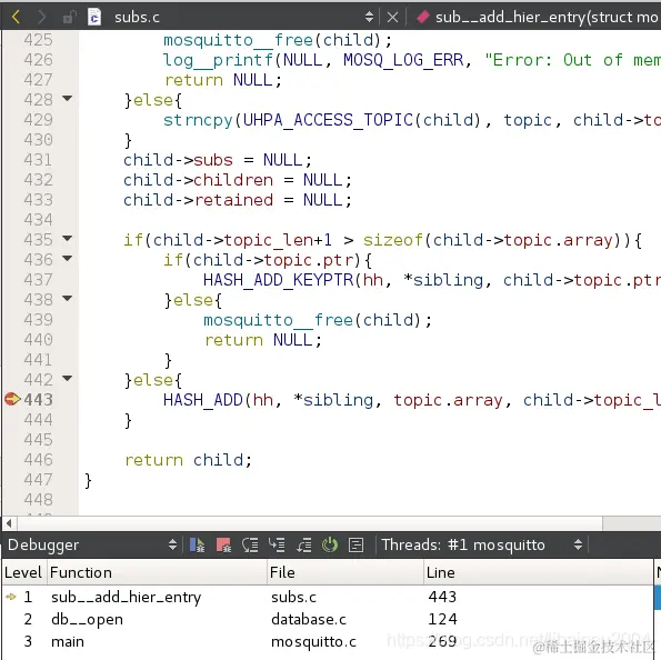 订阅的最终目标就是执行语句HASH_ADD(hh, *sibling, topic.array, child->topic_len, child); 往哈希表添加元素!