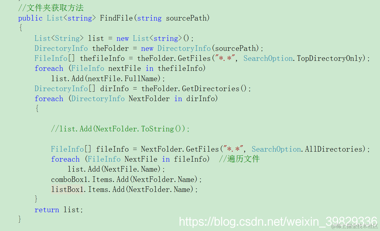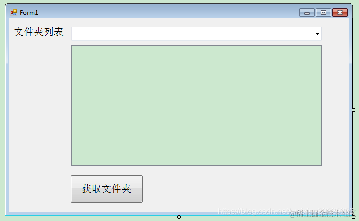 文件夹列表:点击“获取文件夹”按钮,可以获取所有文件夹,文件夹会被遍历在ComBox中和ListBox中;