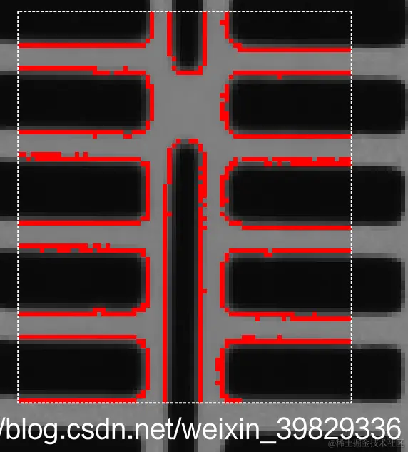 图像中所有满足条件的点会被作为一个整体区域被返回,对于矢量图像,阈值不是对应于灰度值,而是对应于矢量的长度。