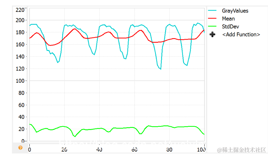 结果灰度值GrayValues,经过StdDev的值来放大,主要在平均灰度值Mean的基础上,从而拉大灰度值的差距,提高对比来选出需要的区域