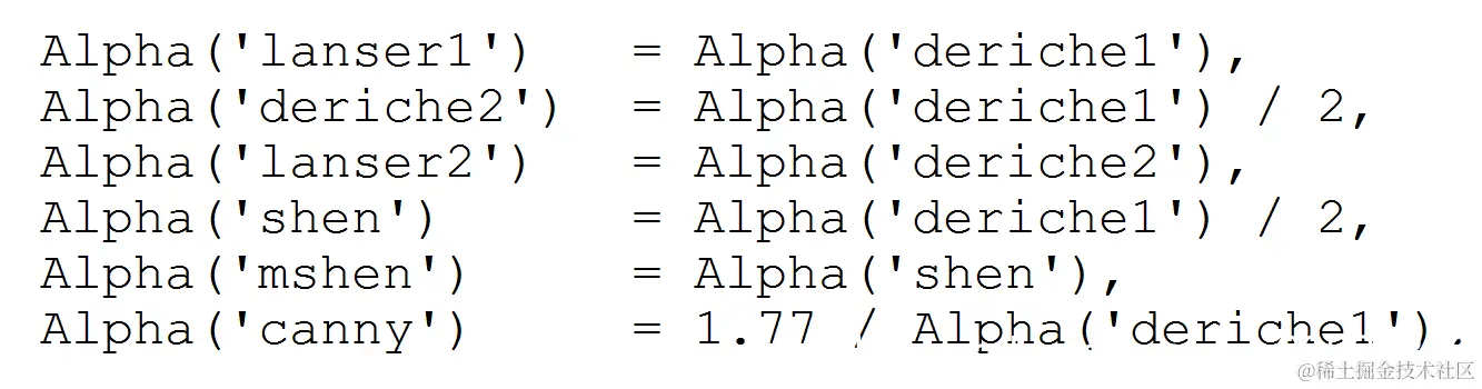 Deriche, Lanser and Shen “滤波宽度”随着Alpha的增加而减小,属于递归滤波器,执行时间不随滤波宽度的变化而变化;