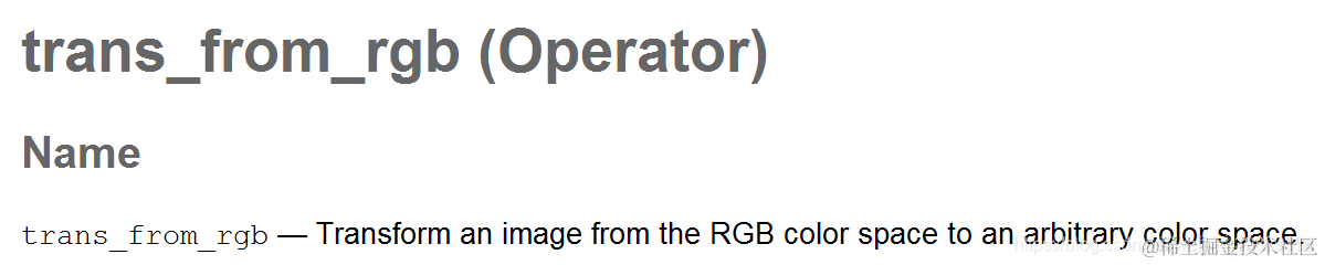 (2)、算子trans_from_rgb支持图像的类型有byte、uint2、int4和real,对于int4格式图像,图像不应该包含负值;对于real格式图像,所有的值都应该在0和1之间;如果不是,转换的结果可能不合理。