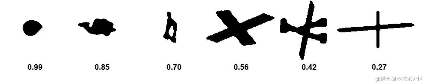 Halcon 算子 convexity 奔跑的Zheng 2021-05-18 190 阅读1分钟 作用:区域凸度的形状因子; 参数翻译(对应以上参数顺序): 输入区域、 输出凸度因子(Convexity <= 1)、 描述: 算子convexity计算每个输入区域的凸度,具体计算过程如下: 如果凸包的面积是Fc,该区域的原始面积是Fo,则定义形状因子C为: 如果区域是凸的,形状因子C为1(例如:矩形、圆形等)。如果有压痕或孔洞,则C小于1,请参考如下图:
