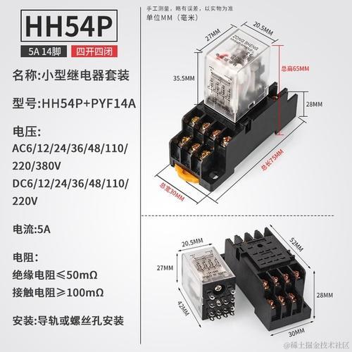 从电压描述可以知道,中间继电器触点可以通过很多中电压等级,从交流6V到交流380V,从直流6V到直流220V,但是电流必须要小于等于5A,