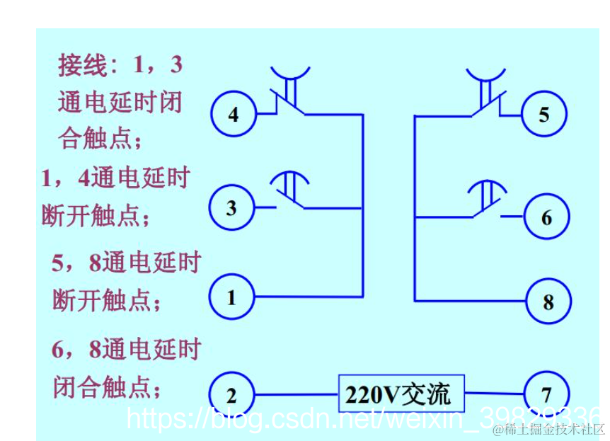 2、总共有两对常开和常闭,1是第一对的公共端,3是延时常开触点,4是延时常闭触点,同理第二对也是一样的,这个和中间继电器也是一样的