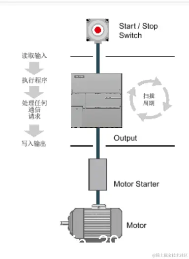 5、写入输出:将存储在过程映像输入寄存器的数值写入到物理输出;