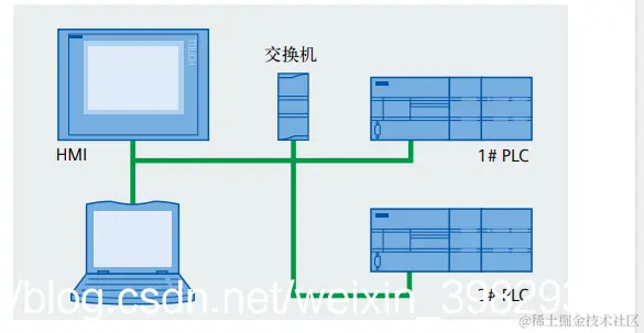 2、所有型号都具备一个以太网口,可以连接到交换机上,来扩展连接上位机以及下位机的数目,例如需要同时连接3个SMART200PLC和两个触摸屏;