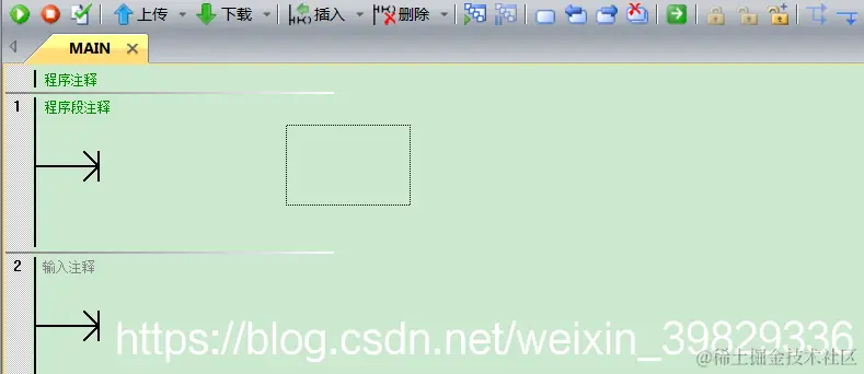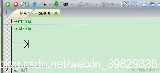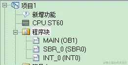 程序块是显示当前项目包含的程序列表,一般初始状态共有三个,主程序、子程序和中断程序,如下图;