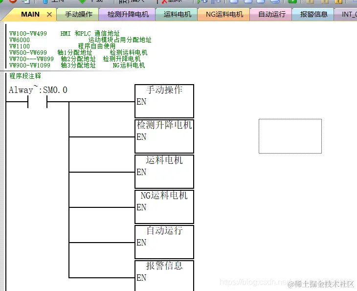 2.在写程序时,最好先把停止写好,安全保护做到位;这样我们在后面调试程序时,即使有什么问题,也不会把设备撞坏;如果我们上来直接写手动程序,再写自动程序,而不注重安全保护,可能会得不偿失;