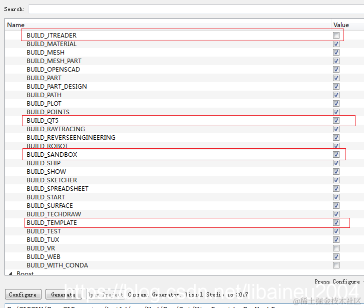 如果CMake点击按钮Configure过程有boost库相关的错误信息,请打开项目的CMakeLists.txt文件